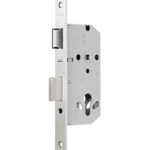Mechanical built-in lock with cylinder entry, reversible lock. The opening of the lock is activated inside using door lever or the yale cylinder that simultaneously activates the latch and the deadbolt.On the outside, the door lock can be only activated by the yale cylinder. Whenever the auxiliary latch is activated, when closing the door, the door stays locked.